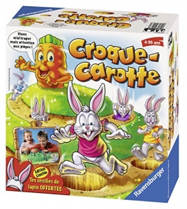 Jeu de parcours et de suspense en volume : Gravis la colline mais attention aux pièges ! Bon autant être clair, ce jeu s'adresse aux très jeunes : 4-6 ans. Le but est de faire la course pour arriver en haut de la colline, et pour cela chaque joueur possède quatre lapins. Les lapins avancent de une à deux grâce à des cartes. Mais attention s'il tombe dans un trou, il est perdu. Il faut savoir que parmi les cartes se trouve la carte « carotte » permettant justement de faire bouger le trou sur la colline. J'ai fait cette chronique inhabituelle car c'est un jeu que je conseille, on y prend beaucoup de plaisir avec des enfants, les règles sont vraiment simples.