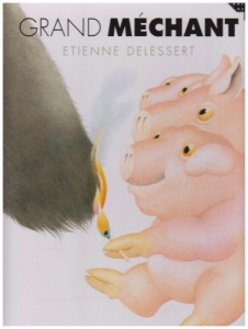 Grand Méchant est une variation moderne sur les Trois petits cochons. Ici, ils ne sont pas seuls à lutter contre le loup, heureusement pour eux, parce qu'ils ne sont pas bien dégourdis. D'ailleurs, ils ne seraient certainement pas dans l'histoire si les chats ne les y avaient pas mêlés. En tous cas, les planches d'Etienne Delessert illustrent parfaitement cette histoire connue de tous, mais qui est revisitée d'une manière peu enfantine. Un peu à la mode Perrault...