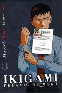 La recrudescence de la délinquance juvénile est au coeur des élections au conseil municipal, et la candidate Kazuko Takimoto ne met pas de gants à ce sujet : elle prône l'application plus sévère de l'article "éducation" de la loi pour la prospérité nationale. La candidate se sert là d'une arme à double tranchant, car si autour d'elle tout le monde acclame, c'est aussi parce que dire du mal de cette loi est passible d'une peine pouvant aller jusqu'à la mort. En plus, tout ne va pas si bien dans sa propre famille. Son fils, Naoki, est en perpétuelle confrontation. Il faut dire qu'il a ses raisons... Or, l'équilibre déjà bien précaire de cette petite famille va être perturbée par l'arrivée de l'Ikigami qu'apporte, comme d'habitude, M. Fujimoto.