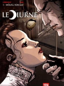 Eric Corbeyran nous revient avec une nouvelle série chez 12 bis. Il semble qu'il ait voulu se frotter au mythe du vampire. C'est un peu la mode en ce moment, le vampire. Surtout en littérature. Pas simple pourtant de justifier de vouloir s'y frotter aussi, sauf si on a une bonne idée. Et c'est ce qu'Eric Corbeyran a eu : une bonne idée. Présenter un vampire pas comme les autres, un vampire diurne. Qui plus est qui serait totalement intégré à la société dans laquelle il vit. Bon, ok, ce n'est pas forcément une trouvaille à toutes épreuves. Mais si on ajoute à cela les vampires nocturnes qu'il nous a concocté, qui se rapprochent plus des hommes de Neandertal que d'autre chose, là, on tient la bonne idée. Parce qu'à part Wölfel Von Ulf qui est un dandy, les autres vampires de l'histoire ne donnent pas vraiment envie de faire connaissance. Ce ne sont pas de beaux gosses ténébreux et mystérieux. Non, on dirait vraiment plutôt des sauvages. S'ils ne se nourrissaient pas de sang, on n'aurait aucune idée quant à leur nature. Si on ajoute à cela que le tout est enveloppé dans une ambiance steampunk, on a de bonnes idées qui ne demandent qu'à s'exprimer. Et elles s'expriment de manière très intelligente au travers de la plume d'Eric Corbeyran.