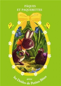 Pâques et pâquerettes est une nouvelle variation autour des Drôles de Petites Bêtes. C'est-à-dire que ce n'est pas vraiment une histoire que l'on va découvrir ici, mais plutôt des images découvertes dans d'autres histoires originales qui, mises bout à bout, forment une sorte de nouvelle histoire thématique. On connaissait déjà le principe dans les livres-puzzle sur les Drôles de Petites Bêtes. Ici, c'est un livre en forme d'ufs qui va nous mettre l'eau à la bouche. Eh oui, nous aussi on aimerait bien partir à la chasse aux ufs et trouver plein d'ufs en chocolat pour les savourer. Mais, patience, cela arrive bientôt.