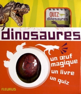 Les "terribles lézards" fascinent et fascineront toujours. Pas étonnant que des livres sur eux sortent encore et toujours. Ici, les éditions Fleurus nous proposent de redécouvrir le livre de Romain Amiot, initialement paru en 2011 dans la collection Voir 6-9 ans. Mais, il a été agrémenté par deux choses. La première, c'est un petit livret qui tient dans la poche et qui est un quizz. Idéal pour s'amuser entre copains tout en apprenant des choses. Les questions qui sont posées trouvent toutes leurs réponses dans le livre. La seconde, c'est cet uf de dinosaure. Le but est de le faire éclore en le plongeant dans l'eau. Et ça, ça plait vraiment.