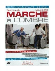 Marche à l'ombre tire son titre de la chanson éponyme de Renaud. Il y a moins de bastons dans le film que dans la chanson, mais les deux compères sont par contre de vrais zonards sans attache. Denis et François se disputent sans arrêt, principalement parce que Denis est un chieur hypocondriaque, mais finissent toujours par se retrouver parce que ce sont des amis "à la vie à la mort". François a beau avoir des allures de gros dur, il a un cur tendre. Simplement, la vie ne l'a pas gâté.