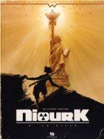 Niourk, ville de lumière, une lumière éteinte depuis lexode des hommes. La planète Terre est revenue à létat sauvage, mais les humains nont pas complètement disparu. Dans le tome premier de Niourk version bande dessinée, nous avons rencontré lEnfant Noir et sa tribu au bord de la ruine. Attaqués par des pieuvres géantes, Bagh, El-Zah, Thôz et les chasseurs nont aucune chance de survie. Cest là que réapparaît lenfant. LEnfant Noir quils avaient rejetés, lEnfant Noir qui a mangé le cerveau du vieux, tué le jaguar, dompté lours et rencontré les dieux, lEnfant Noir qui revient vers les siens avec un bâton de feu. LEnfant Noir est invincible, et lEnfant Noir devient le guide de la tribu. La Vallée de lHuds doit les conduire à la ville qui les nourrira tous, Niourk.