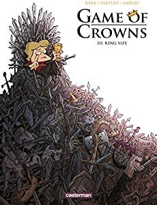 Nul doute, on se retrouve bel et bien plongés dans la célèbre série Game of Thrones, avec ce troisième tome de Game of Crowns, qui paraît chez Casterman, et que l'on doit à Baba, Tartuff et Lapuss'. Les gags sont toujours bien trouvés, faisant bien entendu référence à la série américaine, et ils feront forcément mouche auprès des fans, nombreux, de la série. Cela fait d'ailleurs du bien de replonger dans l'univers imaginé par George R.R. Martin, alors même que la série télé est maintenant arrivée au terme de ses huit saisons.