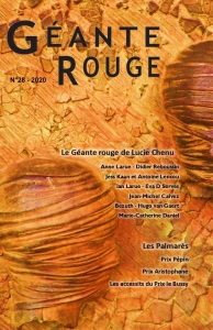 Géante Rouge est un fanzine annuel, lié à la revue Galaxies. Ce numéro 28 contient des nouvelles choisies par Lucie Chenu, ainsi que des textes remarqués dans le cadre des prix Alain le Bussy, Pépin et Aristophane 2020.
