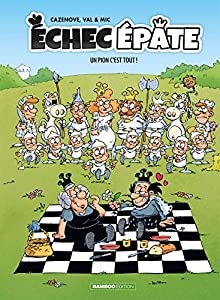 Oui, mais quelqu'un s'est-il déjà intéressé au quotidien de ces pièces, pendant les parties, et également en dehors ? C'est chose faite à présent avec ce premier tome de Echec épate, qui paraît chez Bamboo, avec l'inarrêtable Cazenove au scénario, et Mic et Val aux dessins... Ici donc, on assiste au quotidien de ces pièces, avec par exemple des rois qui s'entraident pour échapper aux tâches ménagères imposées par les reines, ou encore des pions qui font revoir leur contrat auprès de la reine, lorsque cette dernière leur demande des déplacements interdits...