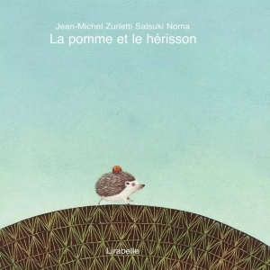 Chaque double page se présente sous la même forme : à gauche, une ou deux phrases qui font avancer l'histoire ; à droite, un dessin pleine page pour illustrer. Les dessins sont entièrement colorisés avec de chaudes couleurs, mais avec peu d'éléments de décor et des arrière-plans souvent unis, ce qui est un peu dommage. Pour la plupart, les dessins se ressemblent, avec un sol bien plat occupant le bas de l'image, le hérisson et/ou la pomme dessus, et un fond uni occupant la plus grande partie de la place. C'est joli et délicat, mais un peu répétitif. Mention spéciale par contre pour les différents motifs, souvent géométriques, utilisés pour le sol et qui sont du plus bel effet.