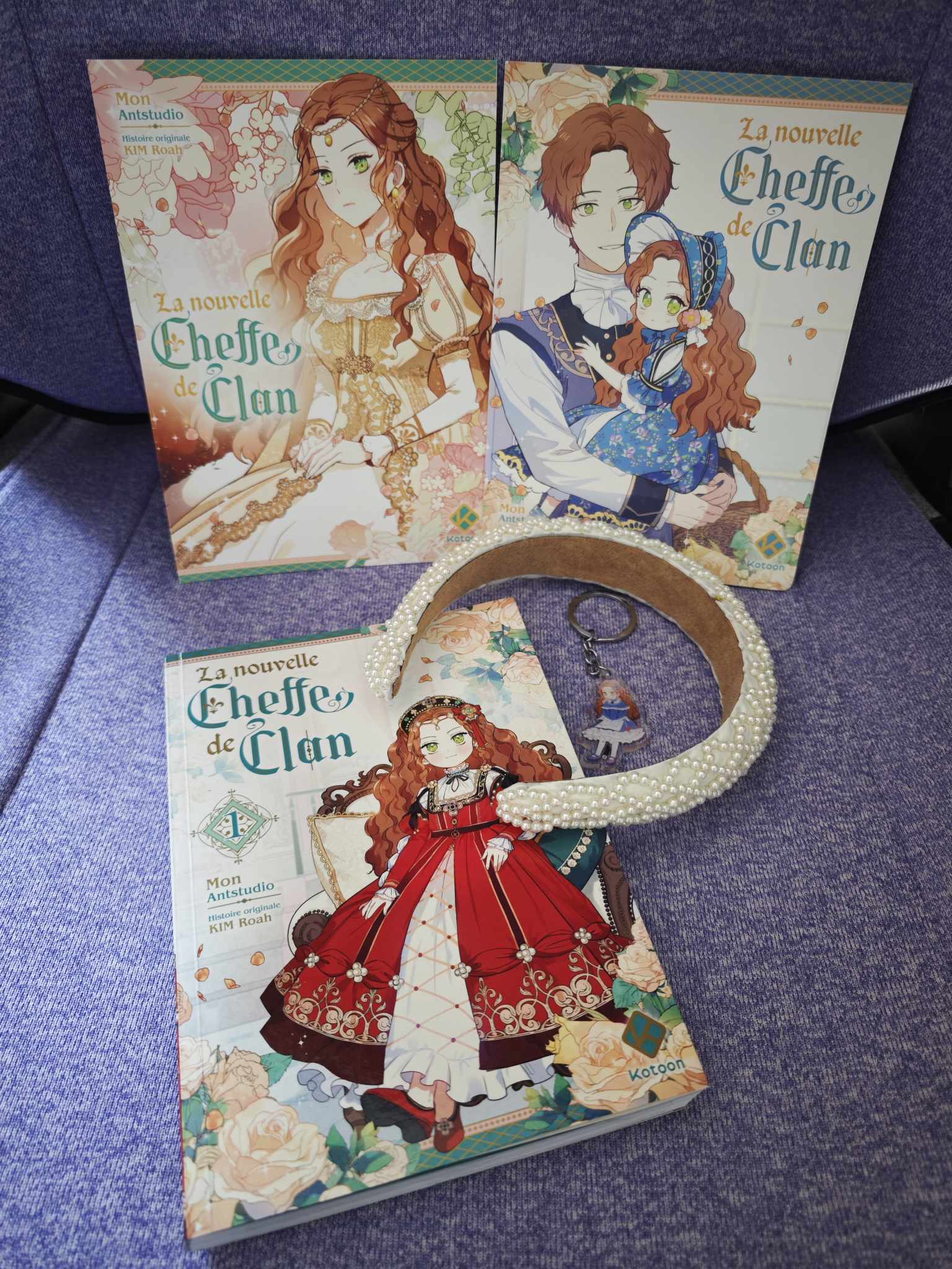 Ce service presse était accompagné de plusieurs goodies très sympas ! Un serre-tête blanc orné de perles, un porte clé à l’effigie de Firentia, et deux illustrations : une de Firentia enfant avec son père, et une autre de l’enfant devenue jeune fille.