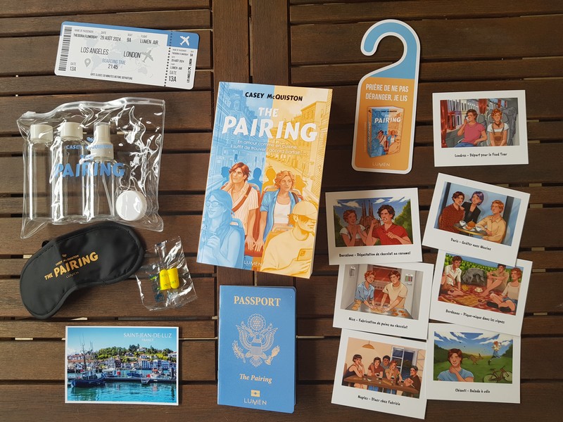 Ce Service Presse était accompagné de nombreux goodies dans le thème : passeport et billet d'avion, accessoires pour l'avion, accroche-porte pour l'hôtel, carte postale mais également des photos reprenant les différentes étapes et pour lesquelles il y a visiblement une animation Instagram (pas testé de mon côté faute d'accès).