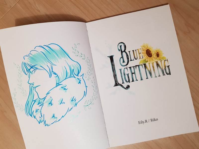 Disponible sur la plateforme Webtoon : Blue Lightning (8 épisodes disponibles, incluant les 6 repris dans ce livre papier) Vous pouvez également découvrir le début du roman qui présente la même histoire du point de vue de Riko sur Wattpad : Emerald Breath, par Rikô (6 chapitres disponibles, le dernier datant de 2023) Ma dédicace :
